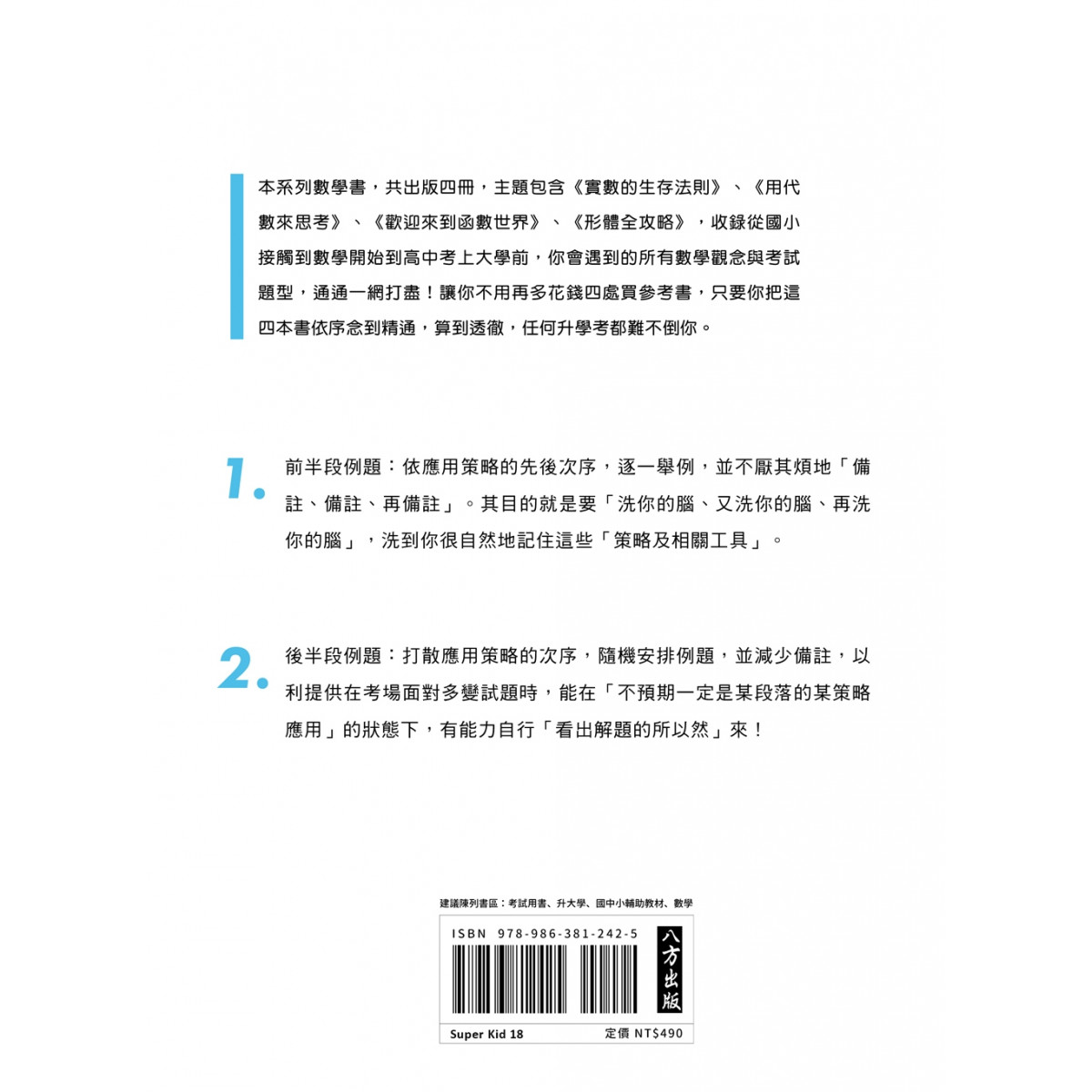 收錄從國小接觸到數學開始、一直到高中考上大學前所遇到的所有數學觀念與考試題型,通通一網打盡!讓你不用再多花錢四處買參考書,只要把這四本書依序念到精通、算到透徹,任何升學考都難不倒你!
