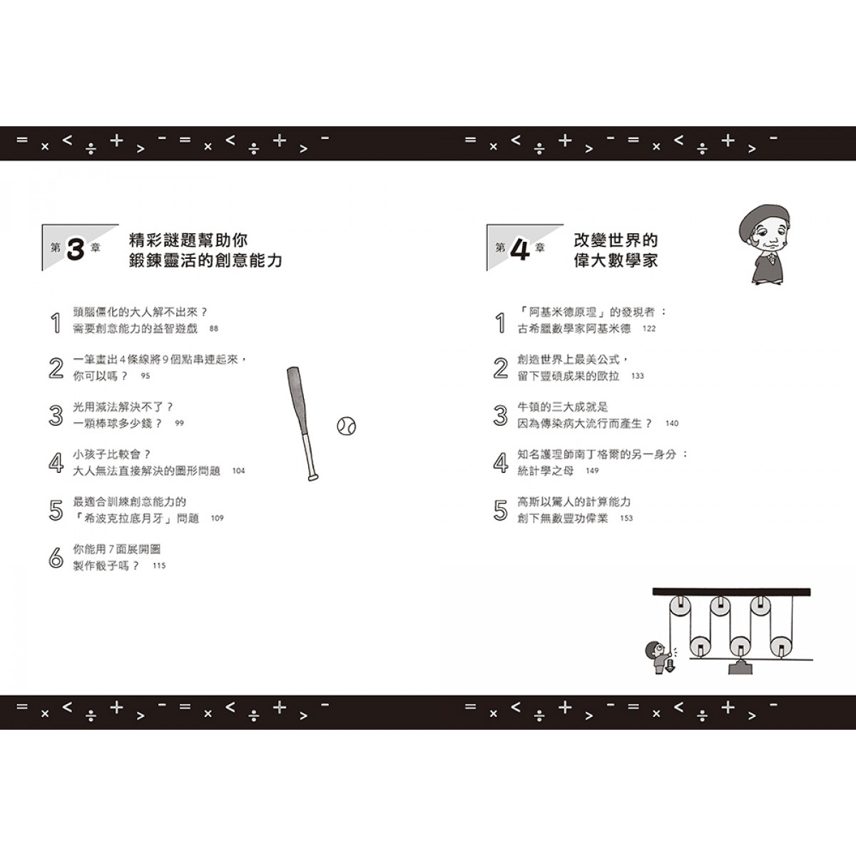 本書透過25個日常就用得上的生活知識、腦力訓練和數學故事,讓你了解數學通俗與趣味的一面。同時透過練習推算的過程,幫助你深度思考,鍛鍊出更敏銳的邏輯思維力以及解決問題的能力。