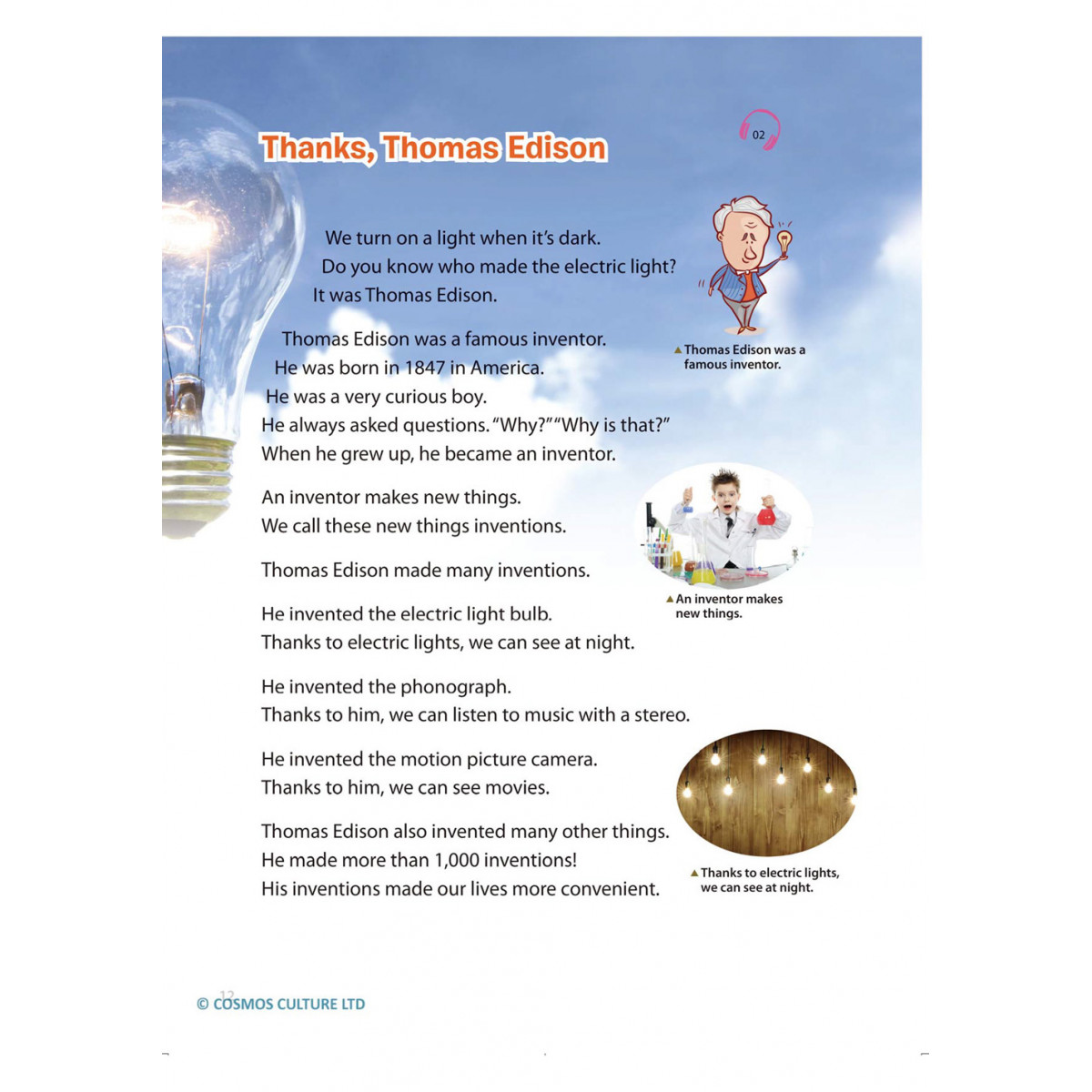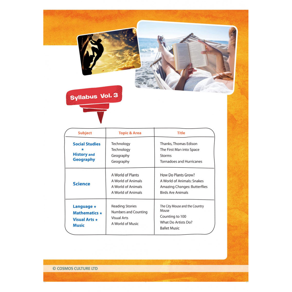 每冊共收錄12篇各領域的精選文章,內容包括社會人文、自然科學、數學、藝術、語言、音樂等學科。在課文內容中,藉由反覆練習,熟悉句型及單字的用法。