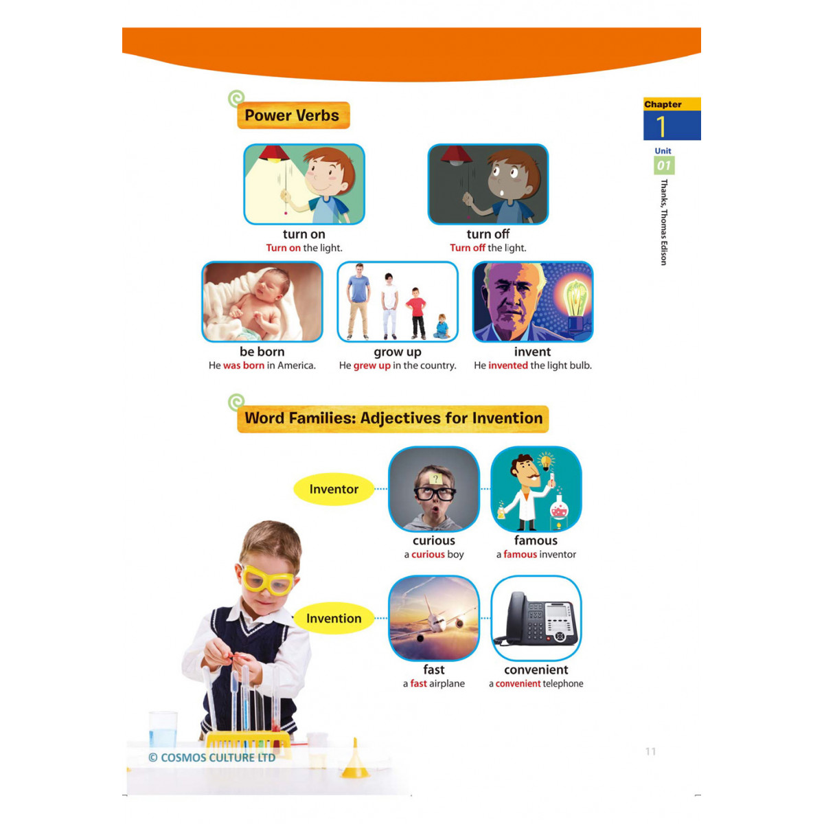 .Power Verbs:學習文章中出現的動詞及片語,看圖辨字,預先熟悉用法,之後讀課文時更容易理解。