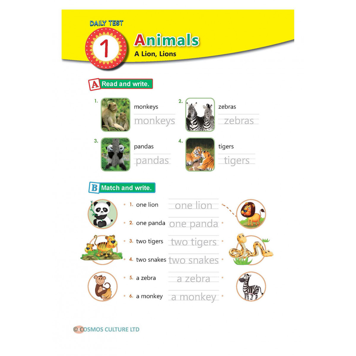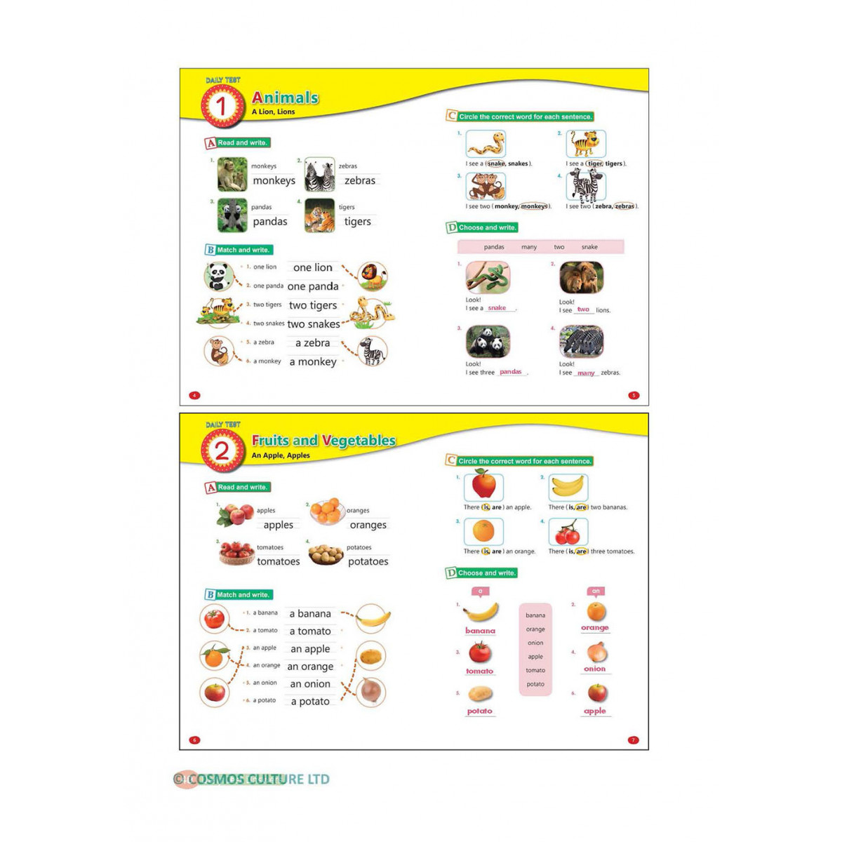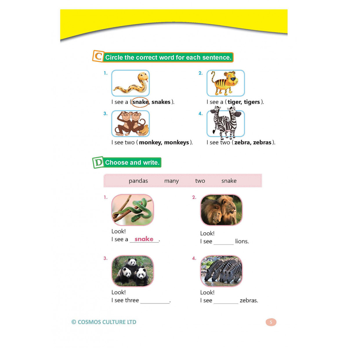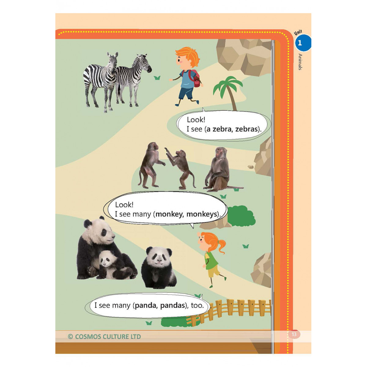 本冊主題為名詞(Nouns),主要介紹生活中常見的八大類單複數名詞(an apple, apples . . .)與不可數名詞(ice cream . . .)等,以及認識不定冠詞(a, an)、複數(-s, -es)和指示代名詞單數(this, that)與複數(these)的情境運用,引導孩童使用正確的名詞來練習表達擁有、喜好之物,與事物單複數及遠近關係等不同情境的句子。