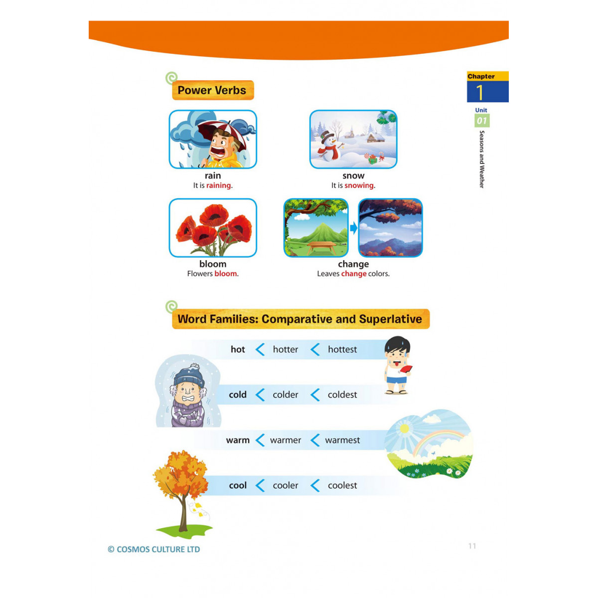 每冊共收錄12篇各領域的精選文章,內容包括社會人文、自然科學、數學、藝術、語言、音樂等學科。在課文內容中,藉由反覆練習,熟悉句型及單字的用法。