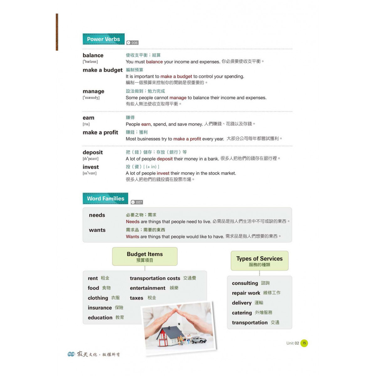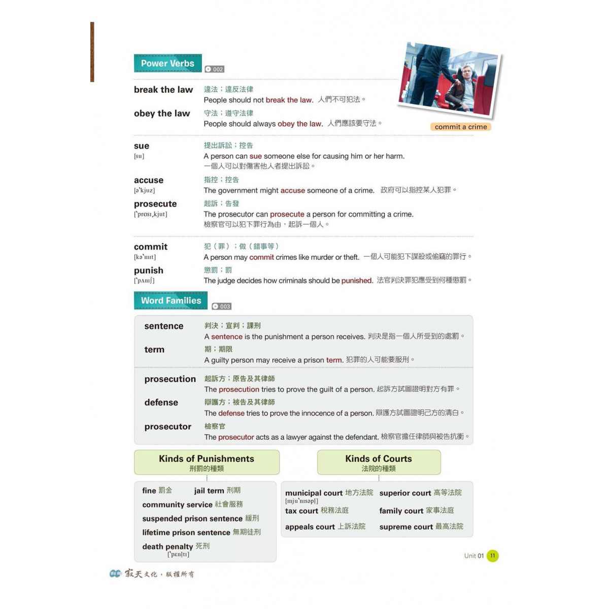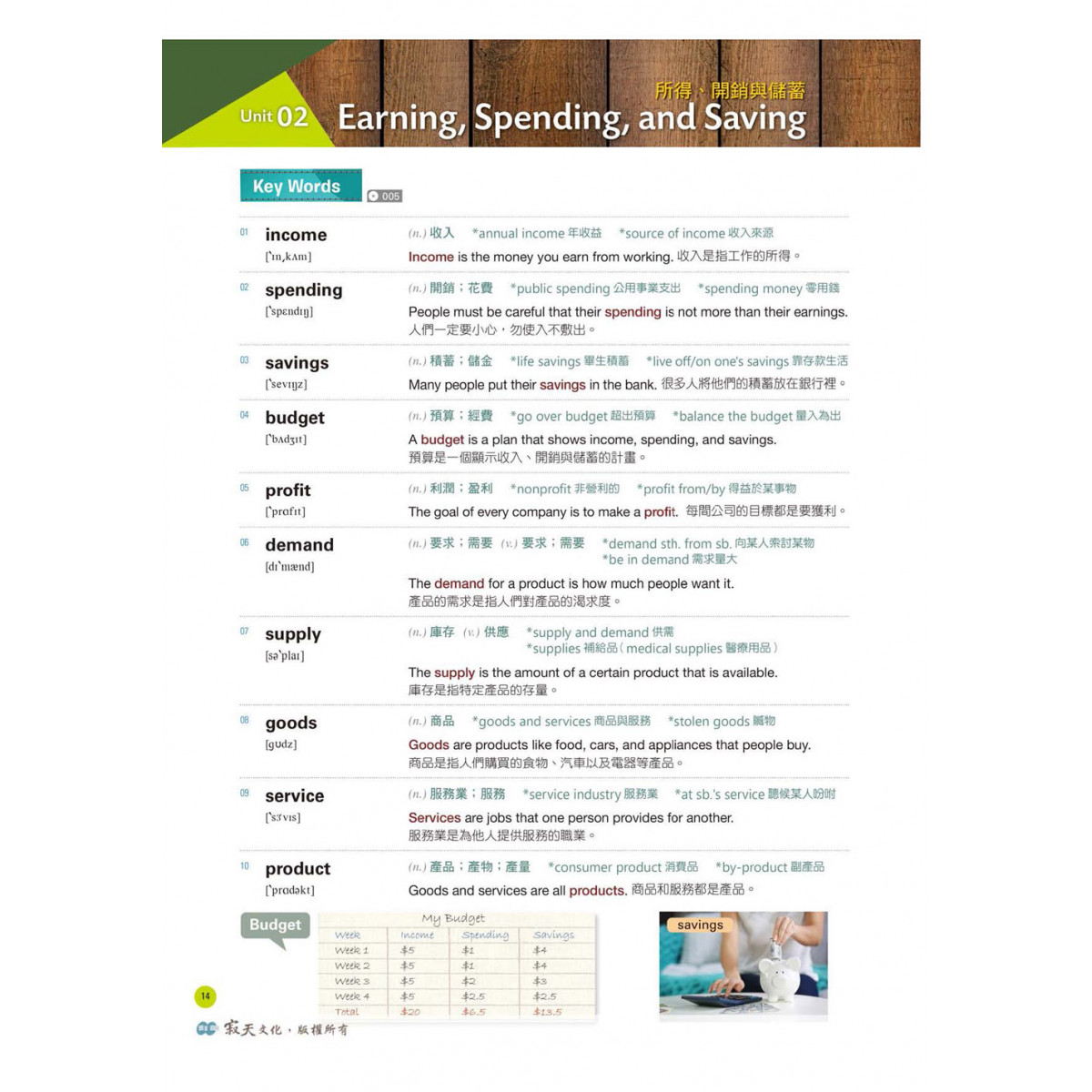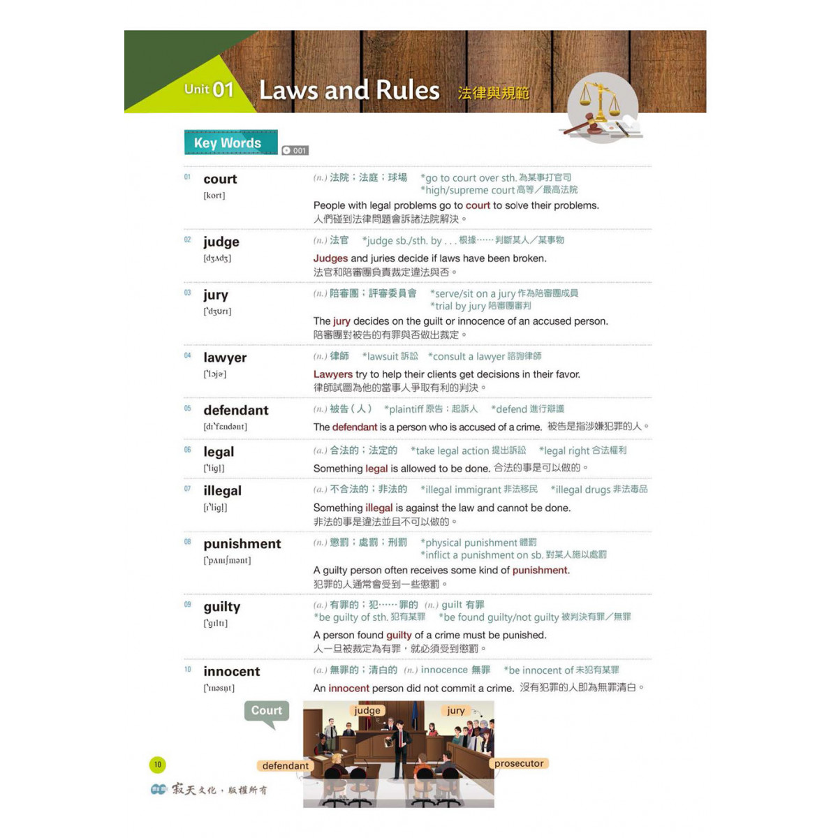 網羅了在以全英語教授社會、科學、數學、語言、藝術等學科時,所有會出現的必備英文單字,輔以相關用語、搭配詞,配合真實的照片、彩色插圖和活用例句,有助輕鬆熟記,掌握相關用法,也能學習相關的背景知識。