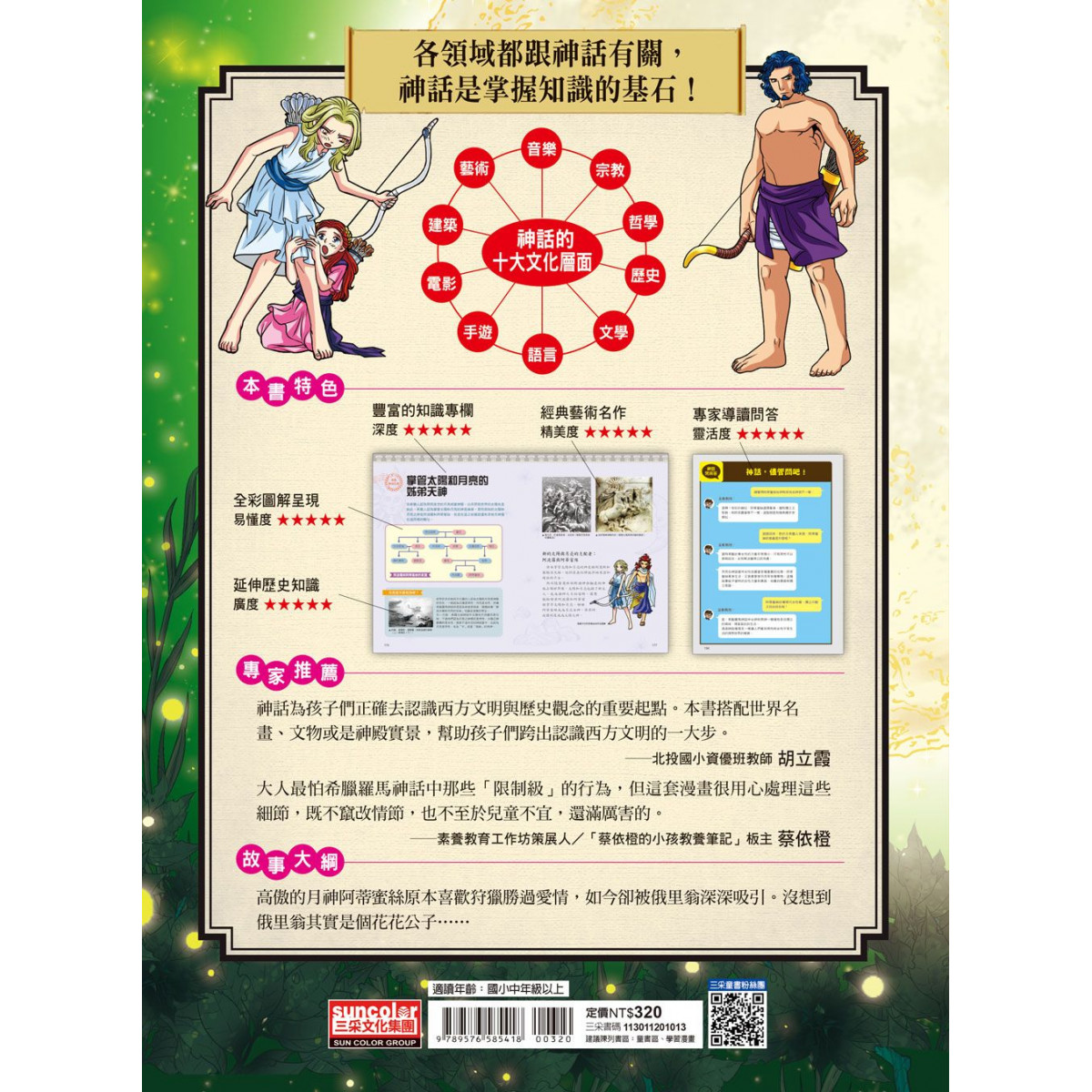 ★神話為孩子們正確去認識西方文明與歷史觀念的重要起點。本書搭配世界名畫、文物或是神殿實景,幫助孩子們跨出認識西方文明的一大步。──北投國小資優班教師 胡立霞