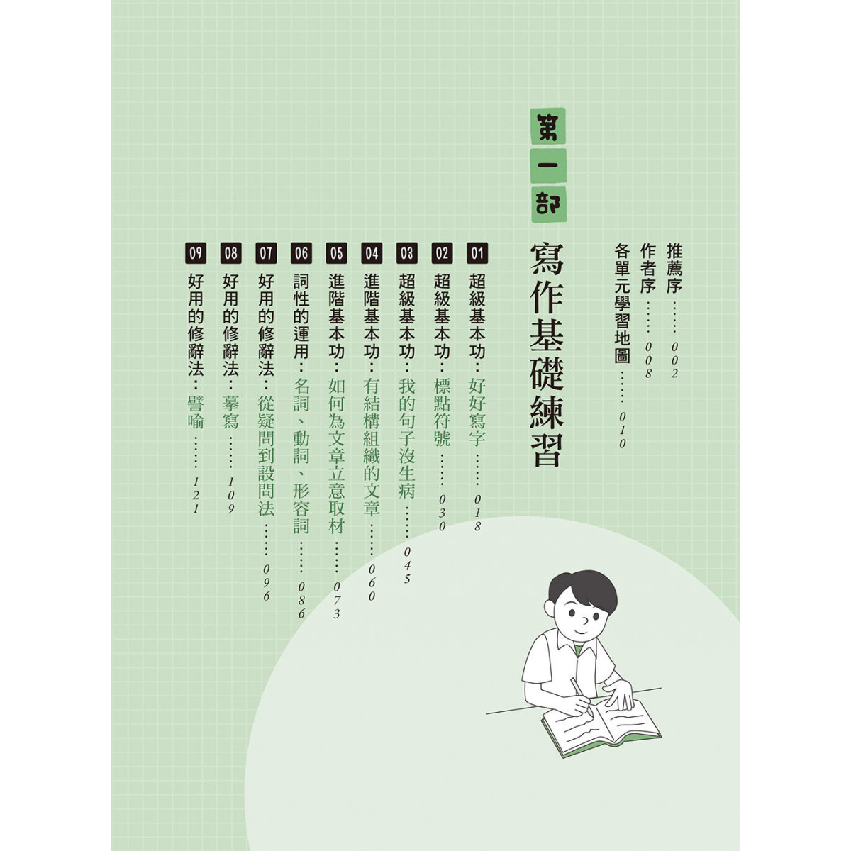√ 10堂基本功:陪你練好字、改病句,熟悉各種修辭與不同形式的文章。