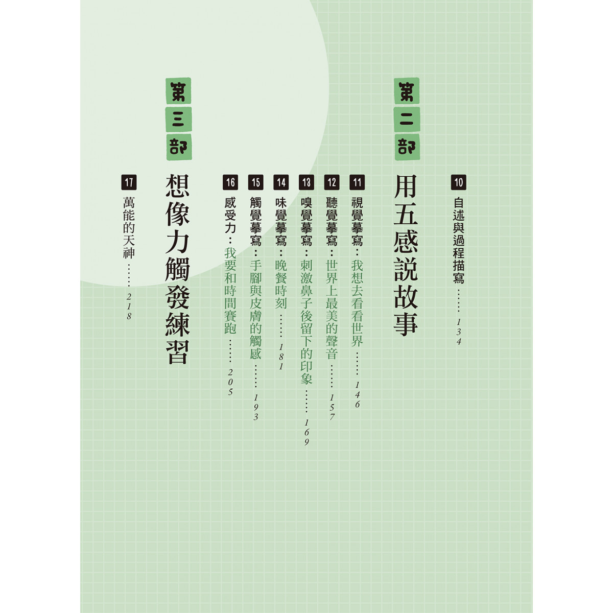√ 6堂感官摹寫:開啟你的五感,用視覺、聽覺、嗅覺、味覺、觸覺說故事。