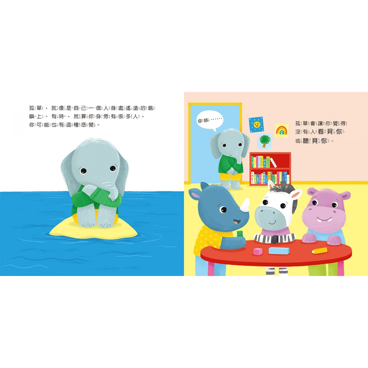 在大象的引導下,孩子們學會認識並接納自己的情緒,逐步發現讓自己舒心的方法。這本書提供了適合年幼孩子的情緒洞察和表達詞彙,鼓勵他們勇敢地說出內心的孤單,並幫助他們在孤單時懂得尋求支持。