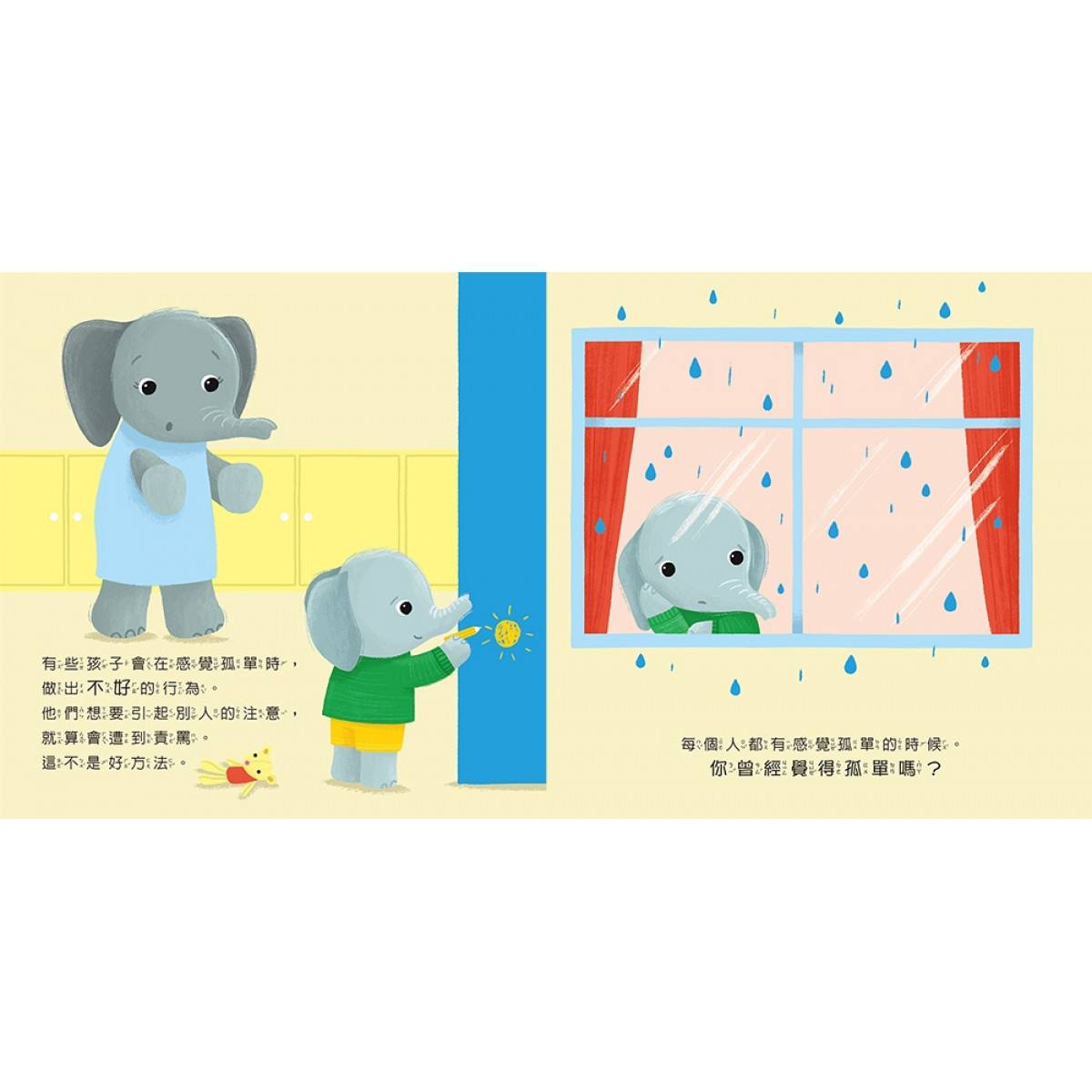 孩子們感到孤單的原因有很多,即便身邊有兄弟姐妹或朋友陪伴,他們依然可能經歷這種情緒。年幼的孩子通常不懂得如何清楚地表達內心的孤單,而《孤單怪來了!如何開口求助,克服低落心情?》這本書,以溫暖、充滿同理心的文字,陪伴孩子與可愛的大象一起探索孤單的感受。