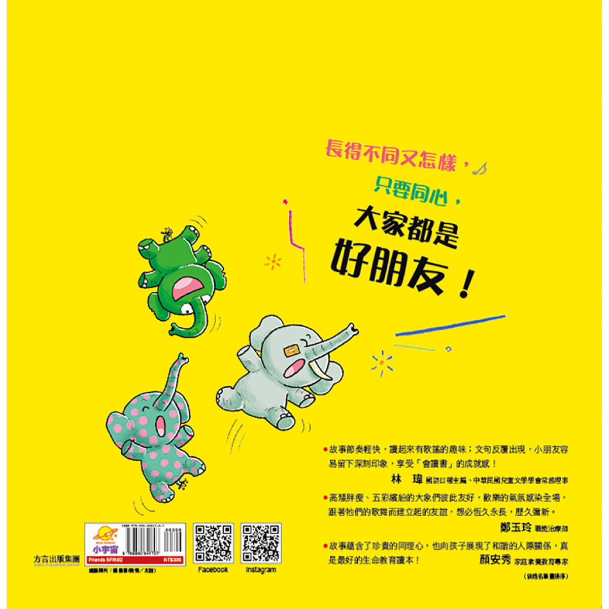 ★隨書附影音QR code,跟著可愛的大象一起動起來,學會包容和友愛!