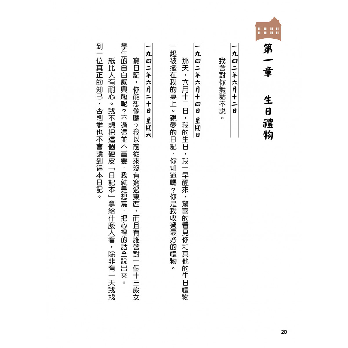 二戰納粹迫害期間,躲藏在小閣樓裡的猶太少女安妮・法蘭克,少女點點滴滴的心情記事:和姊姊爭寵、與跟媽媽抗爭、室友糾紛,以及情竇初開的忐忑和甜蜜。而詭譎多變的戰事發展與身心煎熬:空襲拉警報的惶恐、竊賊闖空門的不安、偷渡糧食的風險與精神寄託的困頓,這些都透過安妮筆下的日記被記錄下來。禁錮生活的種種,並沒有抹滅安妮樂觀自省的心,仍然抱持著希望嚮往未來!讓我們一起反思戰爭與人權,見證大時代下小人物的不平凡!