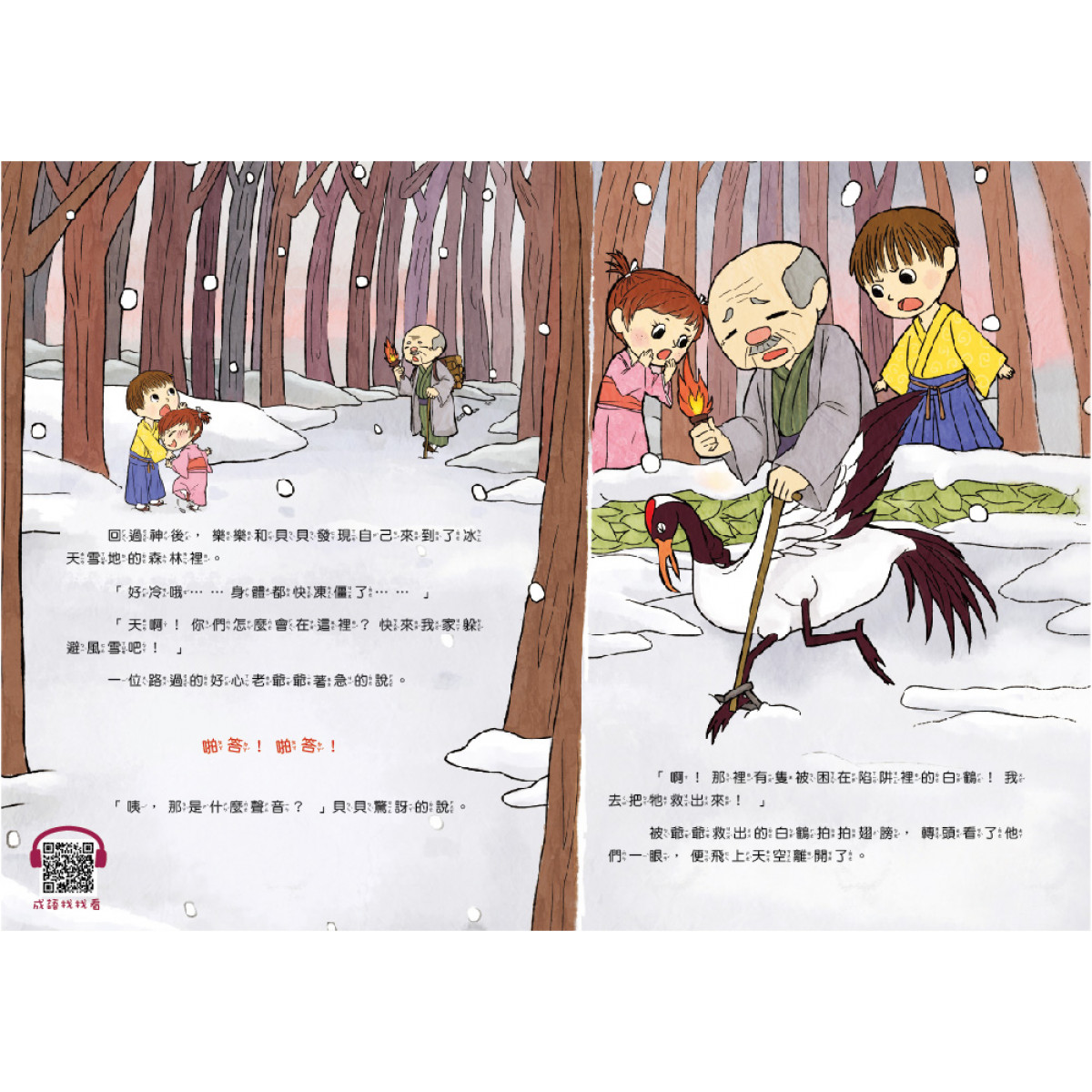 善良的老爺爺救了一隻白鶴後,家門前就出現了一個名叫「白羽」的神祕女孩。白羽很會織布,靠著她織出的布,老爺爺家的生活大大的改善了。但是,貝貝卻忍不住好奇心,偷看了白羽織布的情景,發現了一個天大的祕密!到底是什麼祕密呢?