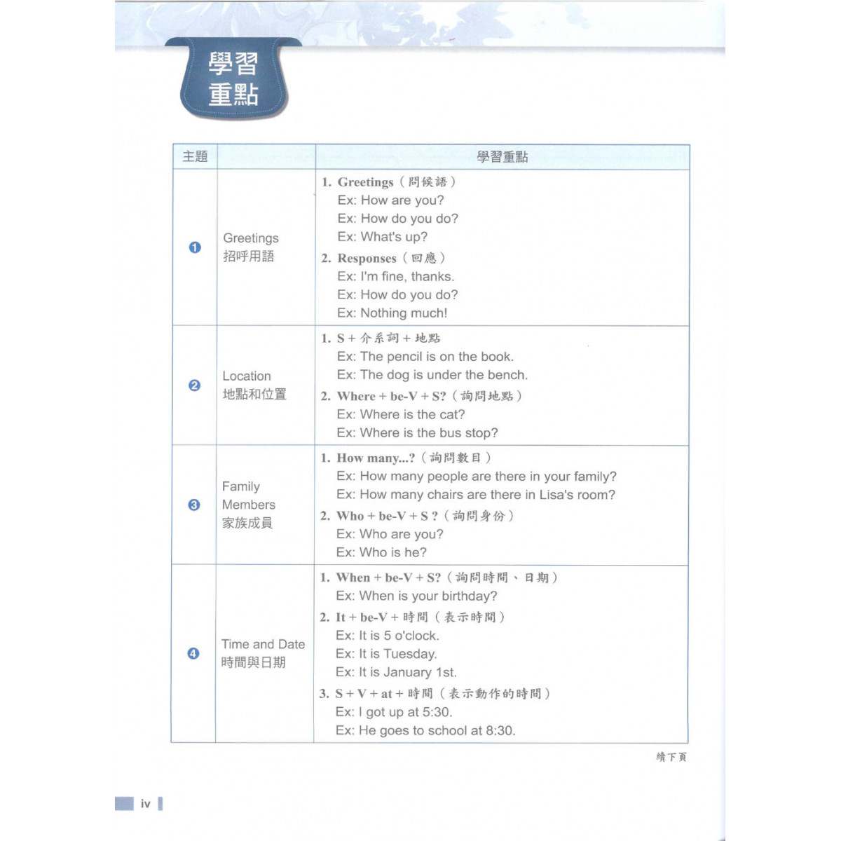 2. 各單元的主題情境皆採自於日常生活情景中常見的事物,讓學習者能熟悉各種情況下之不同對話及句型。