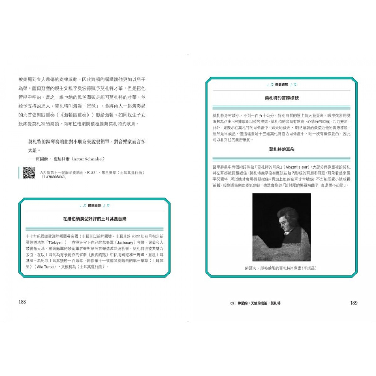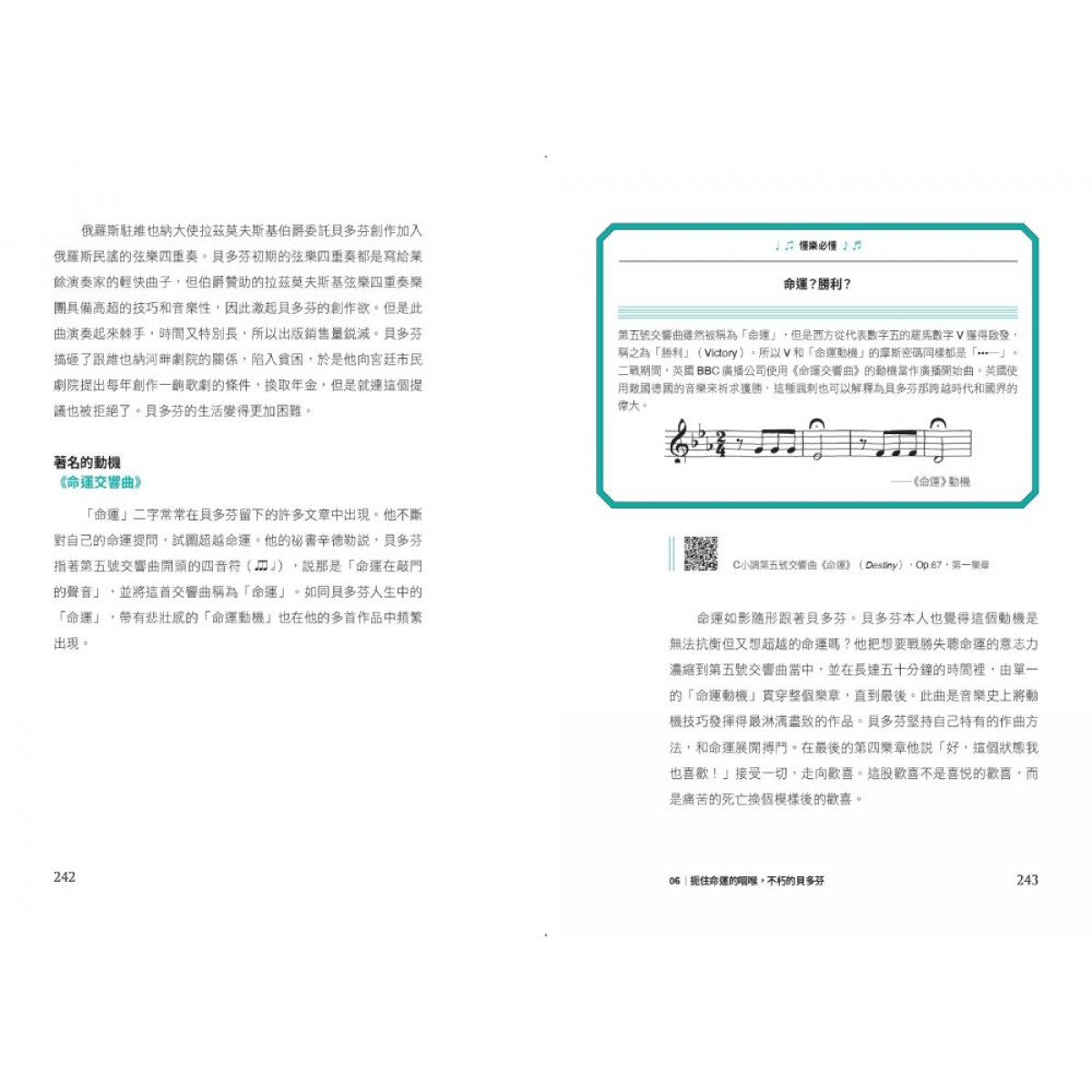 古典音樂的歷史浩瀚淵博,而作者精妙描繪作曲家人生,搭配掃描QR Code播放音樂,更瞬間提升閱讀時沉浸感。這是一本寓教於樂、輕鬆易讀的音樂好書,誠摯推薦。」──林仁斌│名音樂家.音樂導聆人、台灣蹦藝術協會理事長