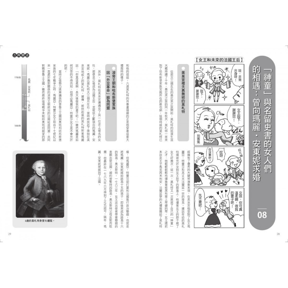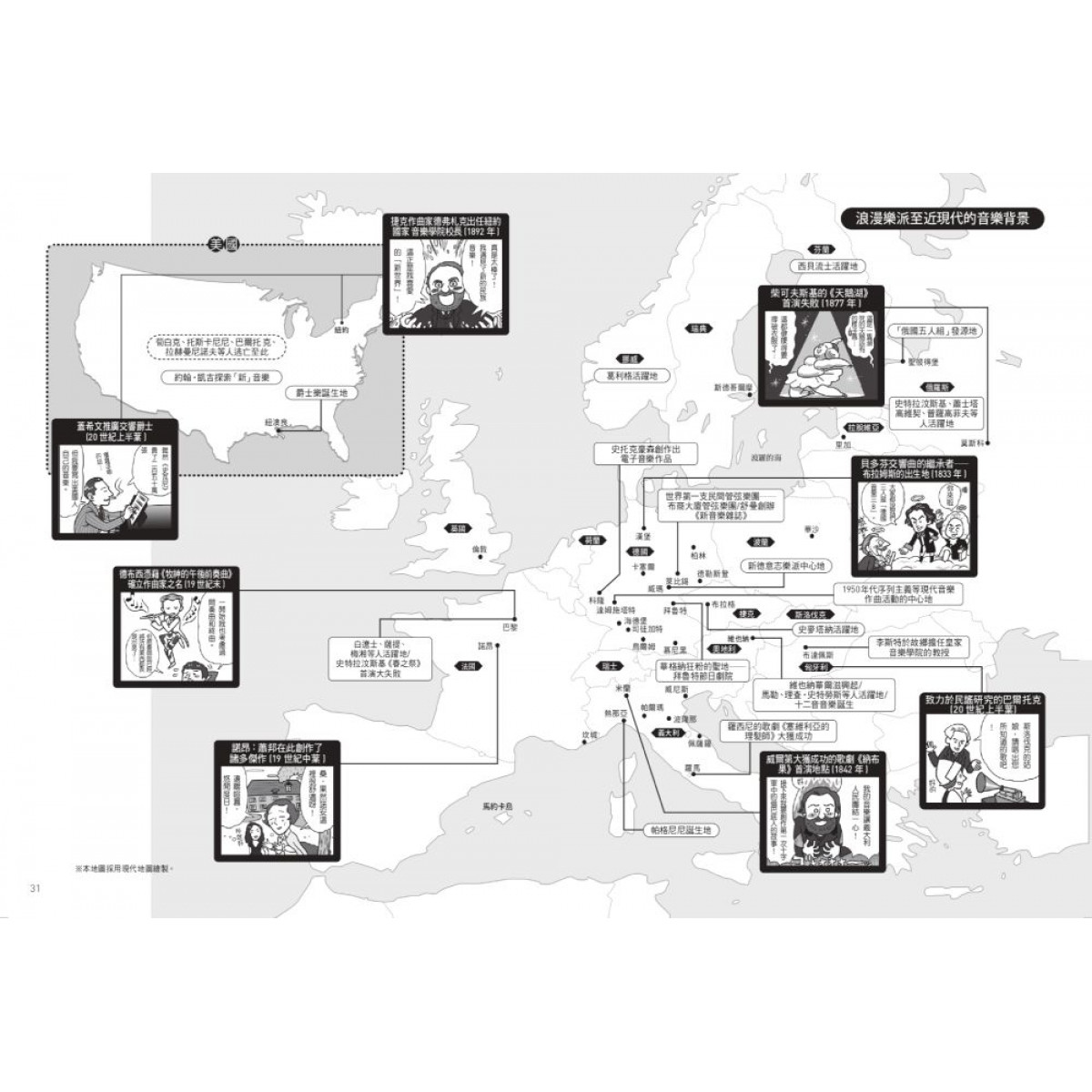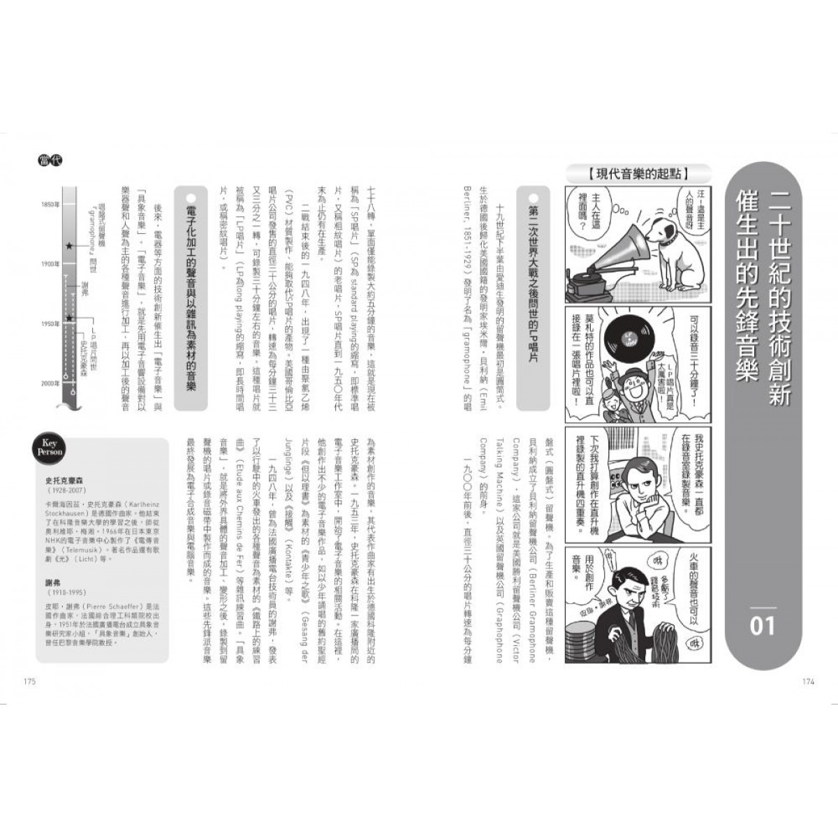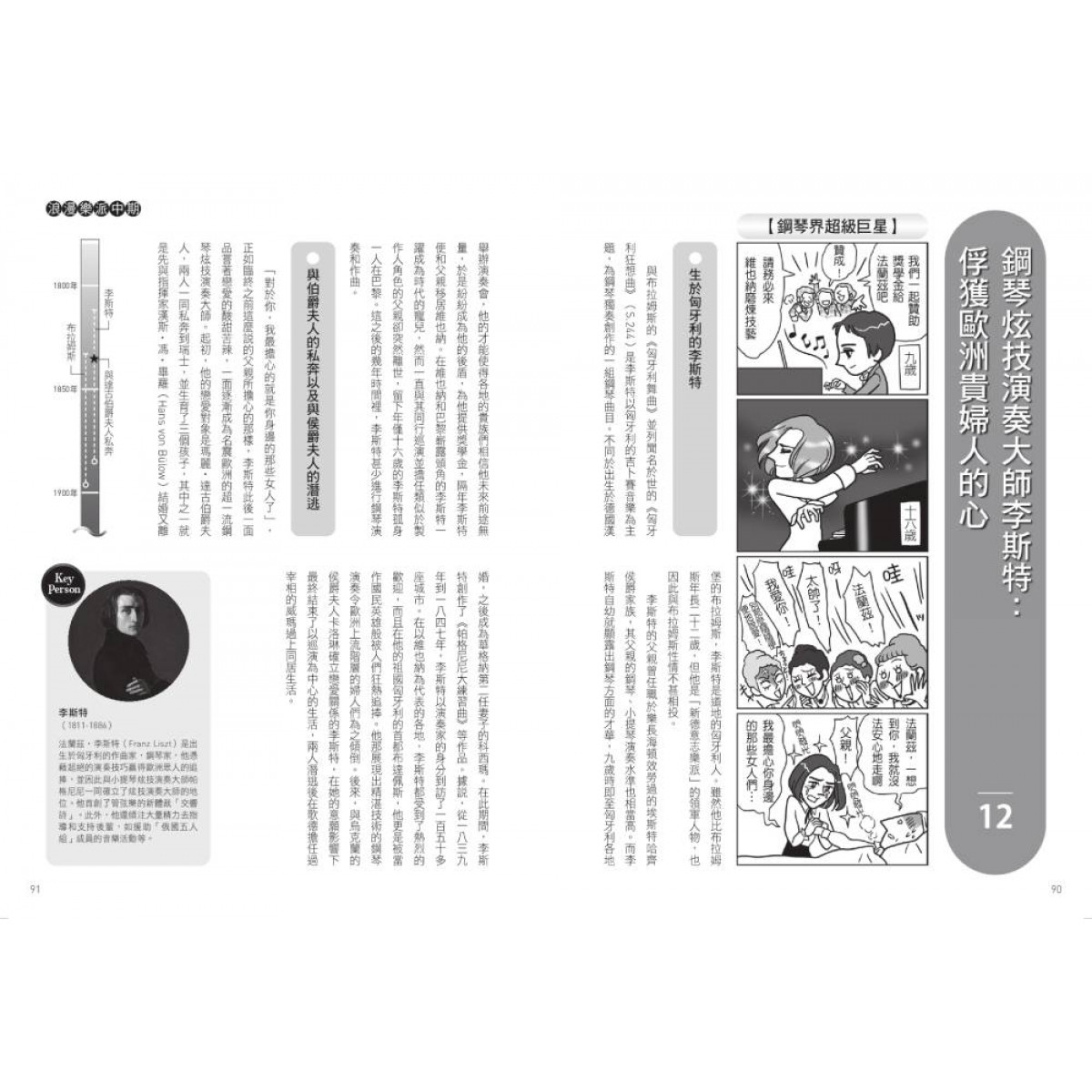 兒童音樂教育第一品牌──日本山葉音樂Yamaha出版社,將複雜的音樂發展脈絡、作曲家生平故事、各時代的文化背景,都融入到輕鬆易懂的圖像敘事中。四格漫畫精心設計,幽默開場,保留了學術的嚴謹性,更增添閱讀的樂趣,讓學習音樂史成為一種享受。