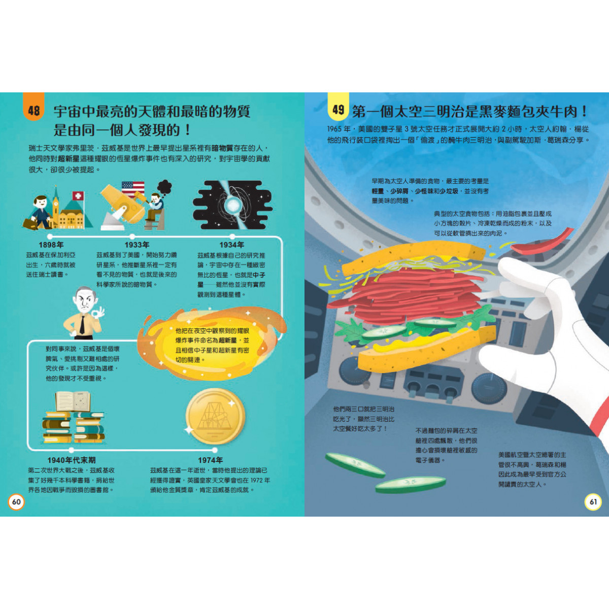 ★色彩豐富、顏色鮮明的可愛圖表+小小科學人,陪著你穿梭百萬光年、降落遙遠行星、認識天文學家和他們的大發現!