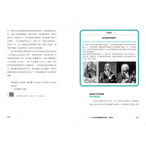 第一冊【古典樂派】篇,作者先從現代人所喜愛的古典音樂起源──巴洛克時期開始講起。你是否曾在看畫面殘忍的電影時,感受過巴洛克音樂的魅力?《親切的金子》、《寄生上流》和《火線追緝令》等電影,出現殘忍場面時,總是會傳來美麗優雅的巴洛克音樂,形成兩極化的鮮明對比,帶來衝擊美。殘忍電影意外地是宣揚巴洛克音樂魅力的好工具。