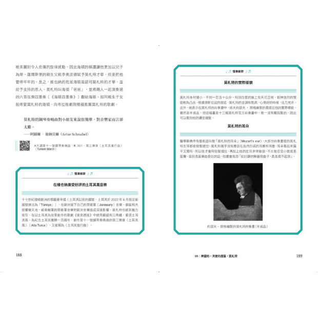古典音樂的歷史浩瀚淵博,而作者精妙描繪作曲家人生,搭配掃描QR Code播放音樂,更瞬間提升閱讀時沉浸感。這是一本寓教於樂、輕鬆易讀的音樂好書,誠摯推薦。」──林仁斌│名音樂家.音樂導聆人、台灣蹦藝術協會理事長