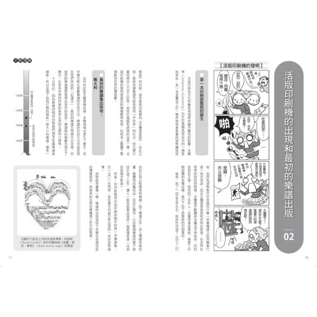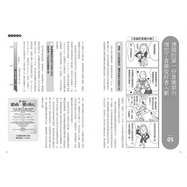 兒童音樂教育第一品牌──日本山葉音樂Yamaha出版社,將複雜的音樂發展脈絡、作曲家生平故事、各時代的文化背景,都融入到輕鬆易懂的圖像敘事中。四格漫畫精心設計,幽默開場,保留了學術的嚴謹性,更增添閱讀的樂趣,讓學習音樂史成為一種享受。