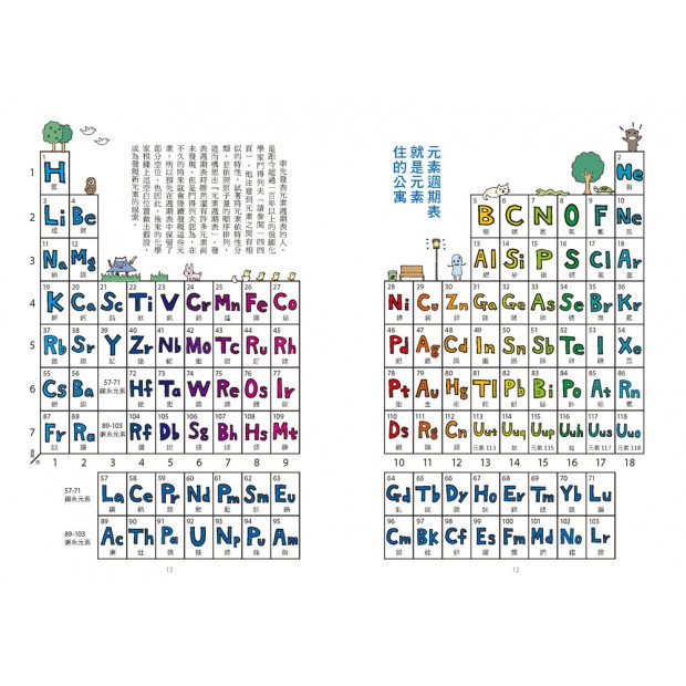 本書將元素週期表化作118個元素居住的原子公寓,而每個元素依照不同的特性,化身成可愛萌角,藉由漫畫演出自己的故事。