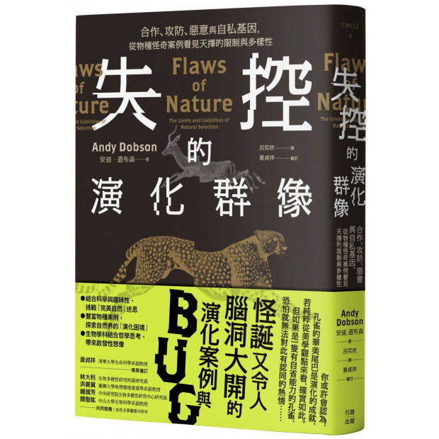 「精彩的讀物,機智又深刻,顛覆了對演化的傳統看法,聚焦於天擇在其毫無目標且道德中立的過程中,產生的缺陷、死胡同與徹底的不愉快。」--米爾納-古蘭德(E.J. Milner-Gulland),牛津大學塔索.萊文蒂斯生物多樣性教授(Tasso Leventis Professor of Biodiversity)