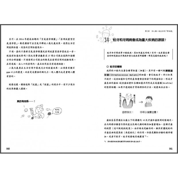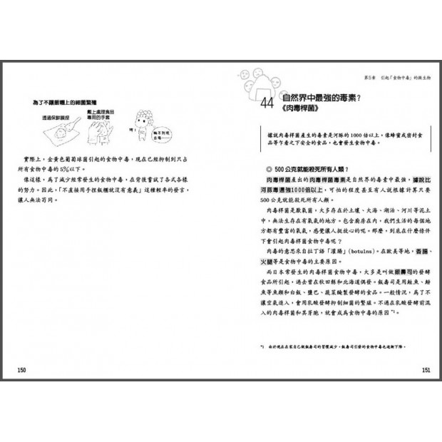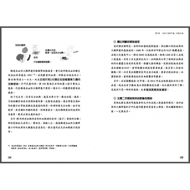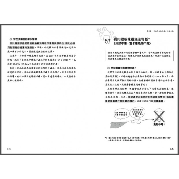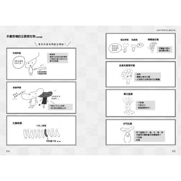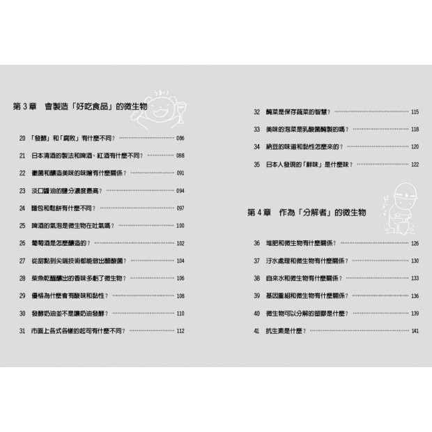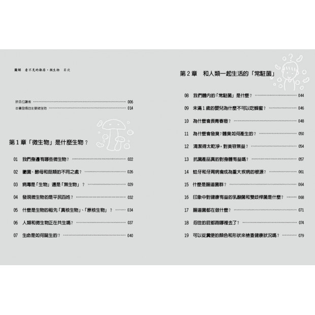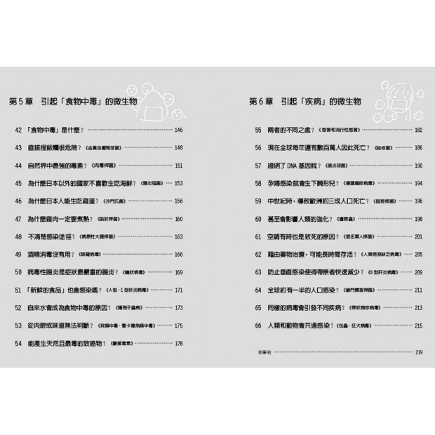 或許有人一聽到微生物,就會聯想到「細菌、黴菌、病毒」,由於它們常會引發食物中毒和傳染疾病,因此讓人覺得「好可怕!」「好噁心!」,常見的有金黃色葡萄球菌、肉毒桿菌、沙門氏菌、諾羅病毒等等,本書都一一說明其特性,以及在生活中要如何避免受到這些微生物的危害而中毒。