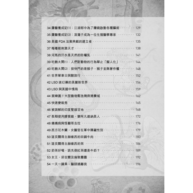 書名「怪奇」,其實就是知識「驚奇」冒險讀物。我很樂意推薦給人文學科的學生,當然包括對醫學與藥學有興趣的讀者,書中的驚奇確實不少。——翁佳音