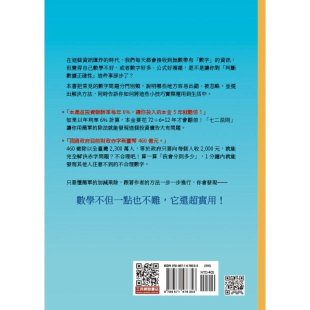 只要懂簡單的加減乘除,跟著作者的方法一步一步進行,你會發現──數學不但一點也不難,它還超實用!