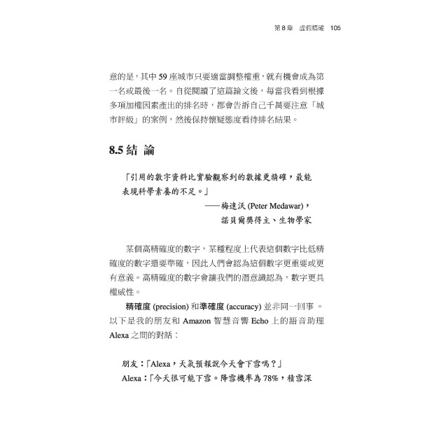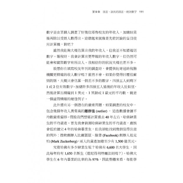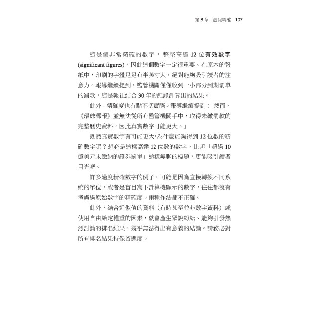「數字、圖表和統計數據往往具有誤導性和歪曲性。作者在書中提供了有趣且有用的指南,告訴讀者如何避開數字陷阱。」──班•羅斯克(Ben Rothke),RSA資訊科技安全大會